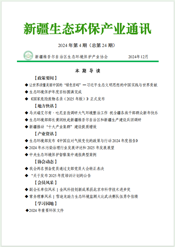2024年第四季度新疆生態(tài)環(huán)保產(chǎn)業(yè)通訊(第二十四期)